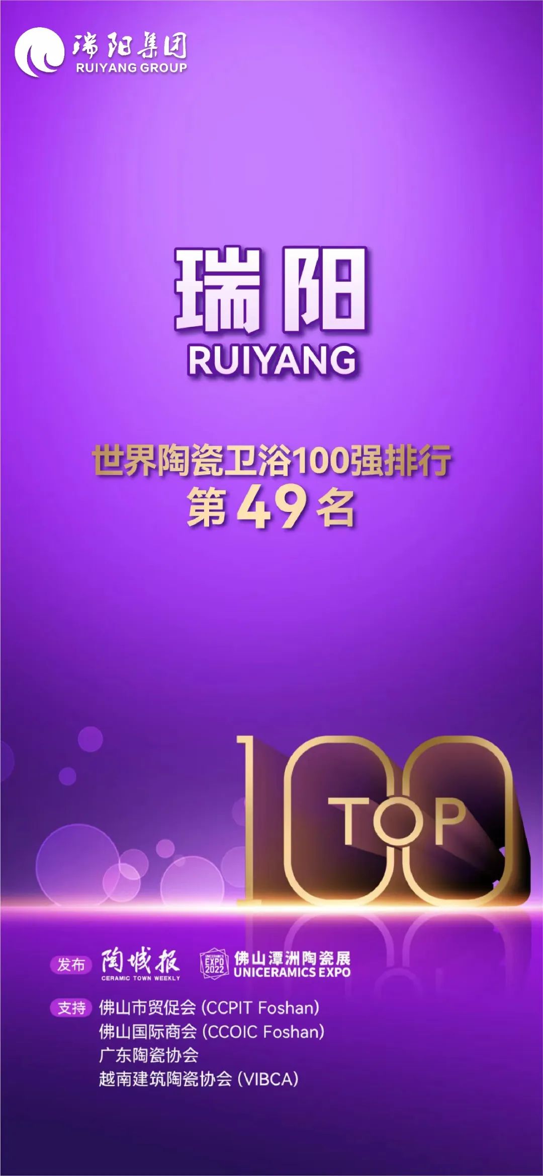 踔厉奋发 跻身百强 ——瑞阳陶瓷集团荣登世界陶瓷卫浴100强第49名!
